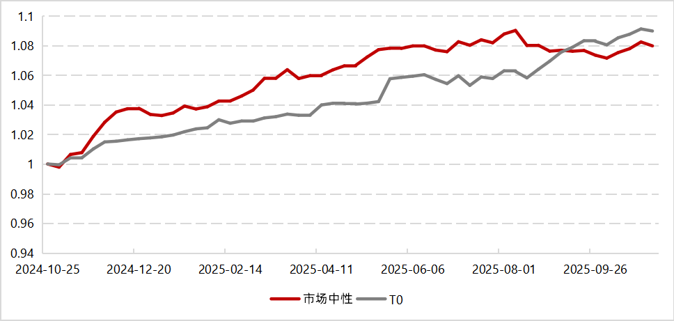 500和1000指增在10月平均超額接近2%,對(duì)沖端基差在10月雖然波動(dòng)較大,但10月末和9月的基差基本持平,受益于超額的上漲,中性策略在10月迎來(lái)修復(fù),但舉例8月初高點(diǎn)仍由一定空間;T0策略受益于流動(dòng)性環(huán)境,在8-10月持續(xù)上行。