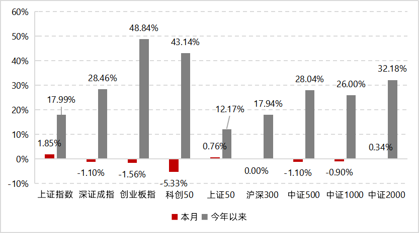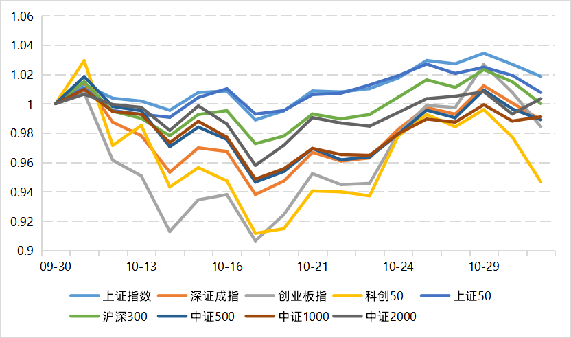 10月A股呈現(xiàn)寬幅震蕩格局,上證指數(shù)月線收漲1.85%,實(shí)現(xiàn)連續(xù)6連漲,但波動(dòng)幅度顯著擴(kuò)大。10月初美國(guó)對(duì)華造船業(yè)加征關(guān)稅等舉措引發(fā)市場(chǎng)避險(xiǎn)情緒,高股息板塊階段性占優(yōu),下旬中美吉隆坡談判釋放積極信號(hào),科技板塊情緒有一定修復(fù),在中美貿(mào)易爭(zhēng)端擾動(dòng)下,市場(chǎng)風(fēng)格從成長(zhǎng)過(guò)熱向均衡配置演進(jìn)。