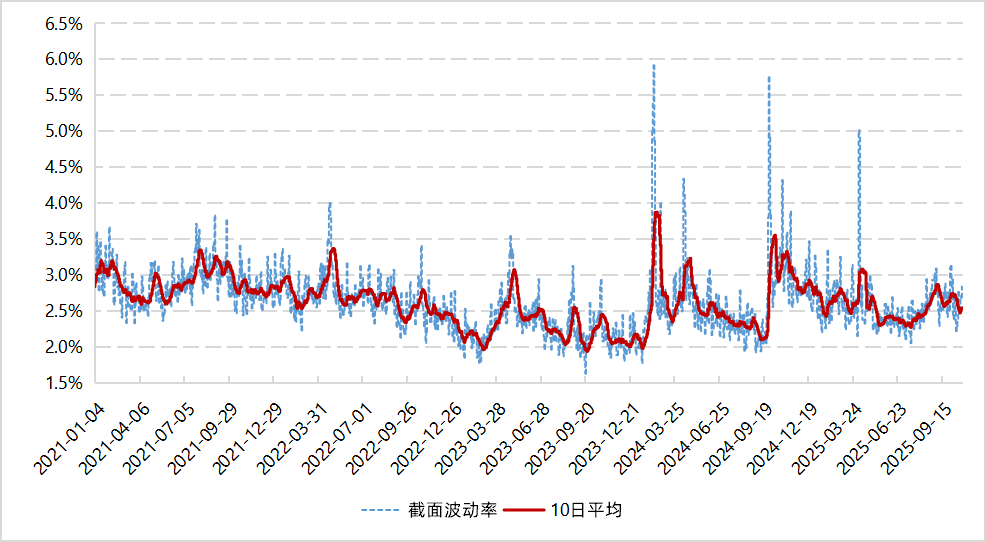 在市場(chǎng)風(fēng)格逐漸回歸之際,個(gè)股的漲跌分化有所收斂,成長(zhǎng)板塊和低估值板塊的差值出現(xiàn)收斂,截面波動(dòng)率10日均值相比9月初有所回落,但仍處于2.5%以上,量化策略的賠率空間仍在,疊加勝率的回歸,超額的修復(fù)速度會(huì)快于常態(tài)行情。